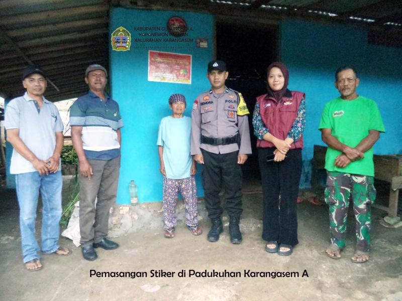 Sementara itu, Tim 2 fokus bergerak di Padukuhan Karangasem A, di bawah komando Dukuh Sarjono, yang turut didampingi oleh Bhabinkamtibmas Kalurahan Karangasem, R.K. Rendra, serta perwakilan Pendamping PKH. Sebelum stiker dipasang, masing-masing Kepala Dukuh mengambil peran penting untuk memberikan sosialisasi dan penjelasan secara langsung kepada setiap keluarga penerima. Penjelasan ini menekankan aturan krusial terkait keberadaan stiker yang menjadi penanda status mereka sebagai KPM.