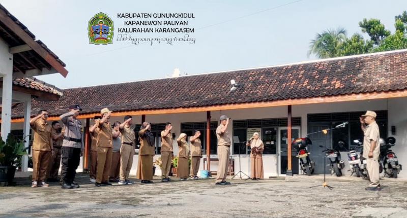 Karangasem-Paliyan (26 Januari 2026) Apel rutin Lurah dan Pamong Kalurahan Karanagsem Kapanewon Paliyan di Halaman Kantor Kalurahan setempat. dihadiri Lurah Karanagsem, Sigit Purnomo dan Pamong Kalurahan serta Bhabinkamtibmas Karangasem.