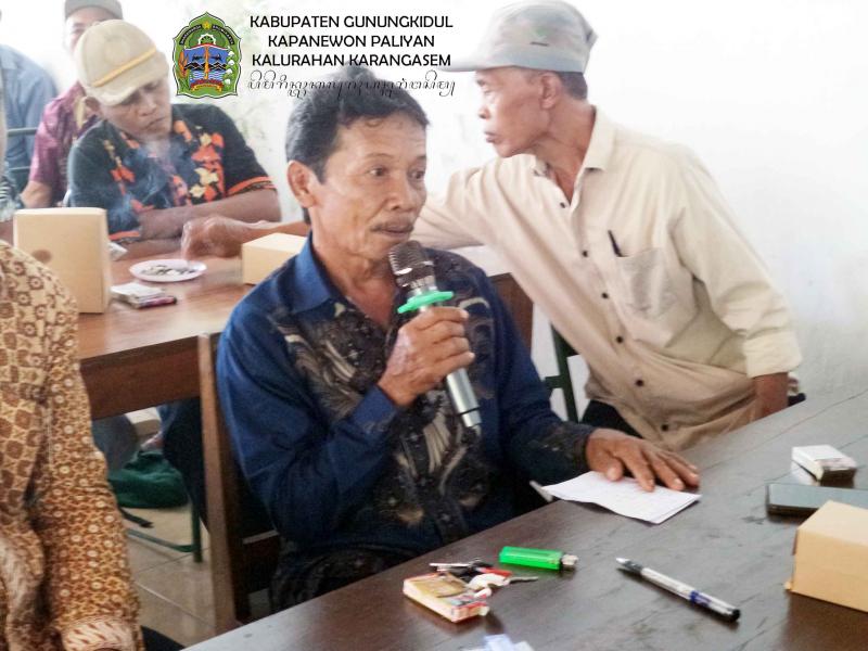 Menutup paparannya, Budi menekankan pentingnya peran 58 RT dan 11 RW sebagai ujung tombak penggerak di lingkungan masing-masing. Dengan struktur masyarakat yang solid, ia optimis Program Ketahanan Pangan ini tidak hanya sekadar menjalankan anjuran pemerintah pusat, tetapi benar-benar menjadi solusi nyata bagi kesejahteraan warga Karangasem. Ia berharap kolaborasi ini dapat berjalan berkesinambungan sehingga Kalurahan Karangasem mampu menjadi contoh mandiri pangan di Kapanewon Paliyan.